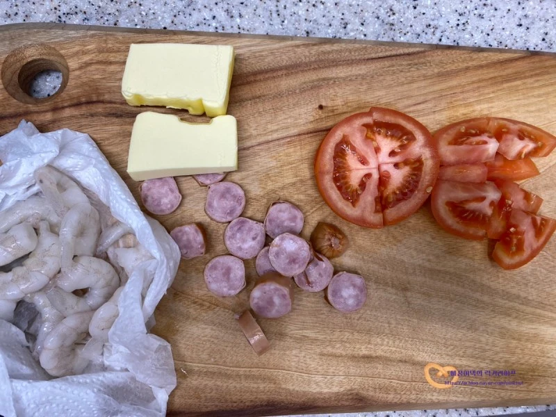 새우를 볶을 때 후랑크소세지 1개를 추가해서 만들어 주시면