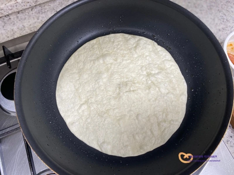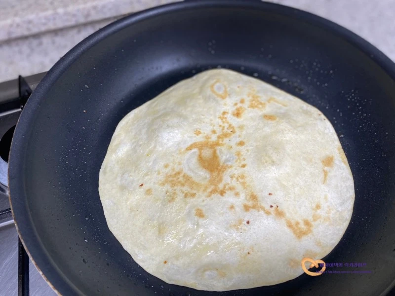 또띠아가 살짝 부풀어 오르면 뒤집어 주세요 :)