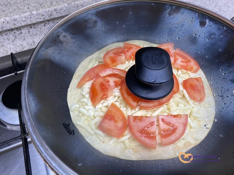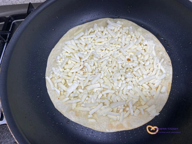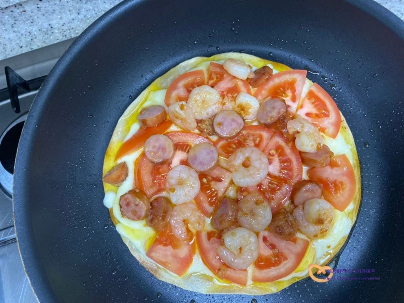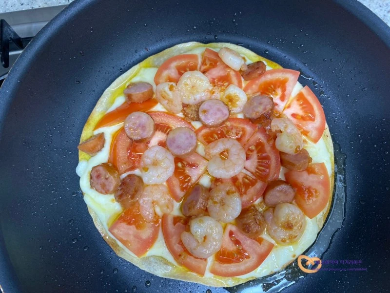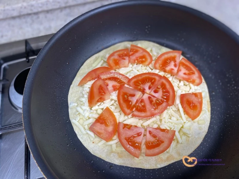 오븐 없이 후라이팬에 또띠아피자 만들기.
