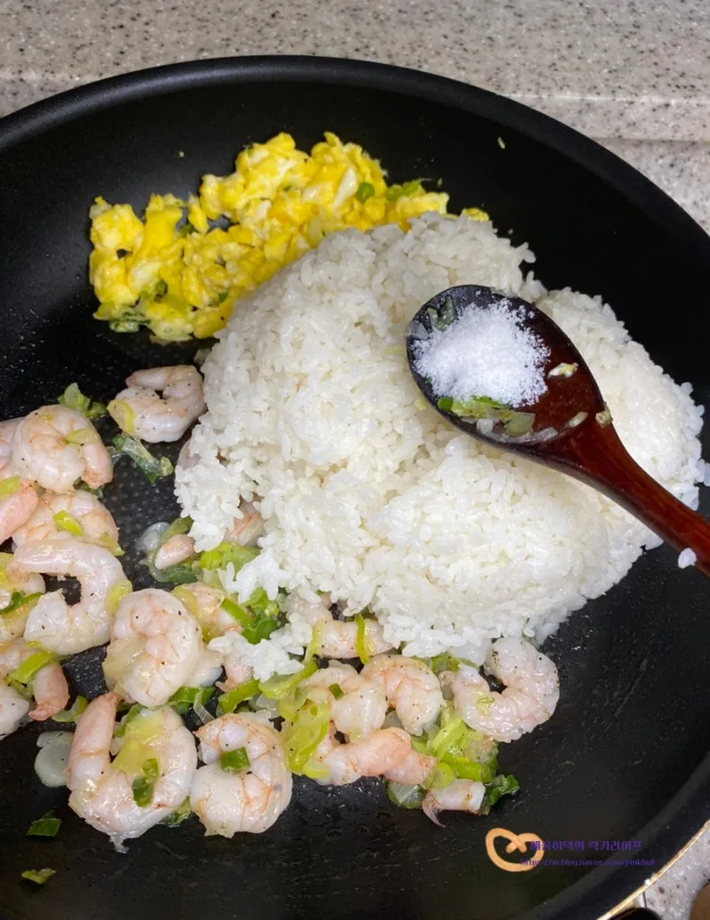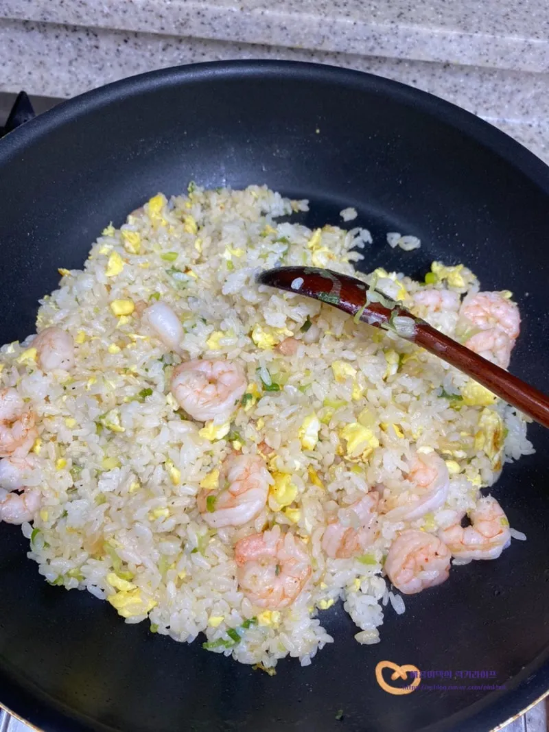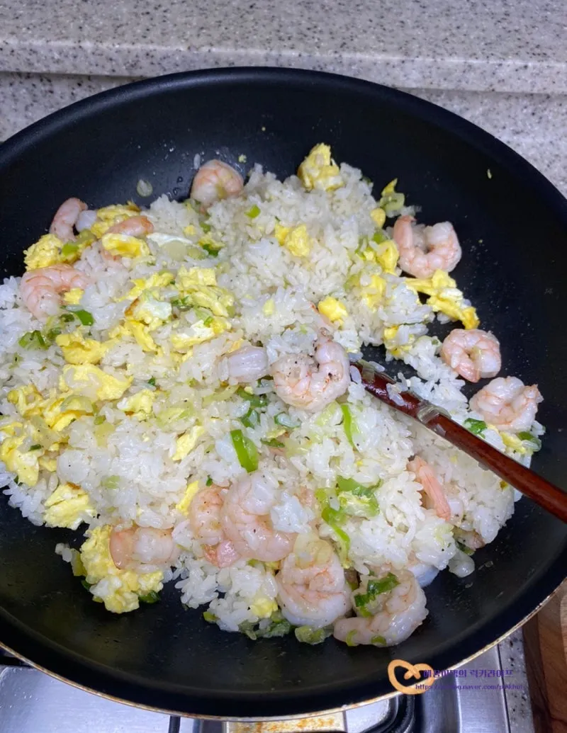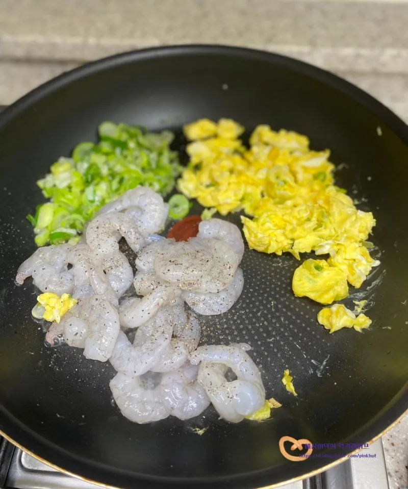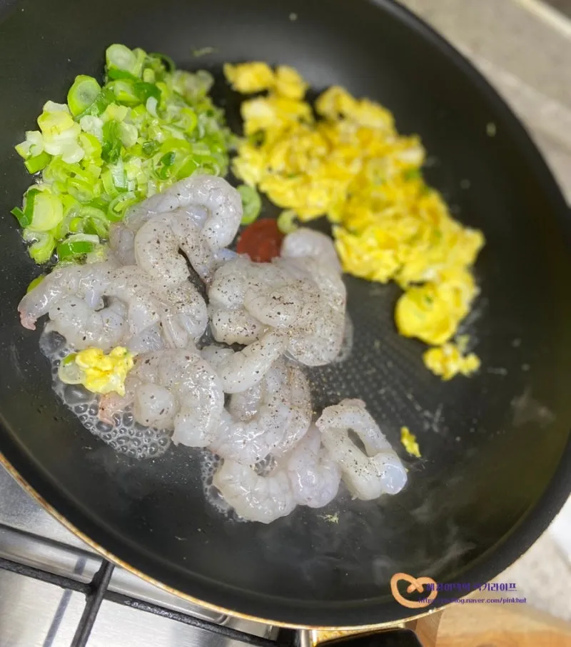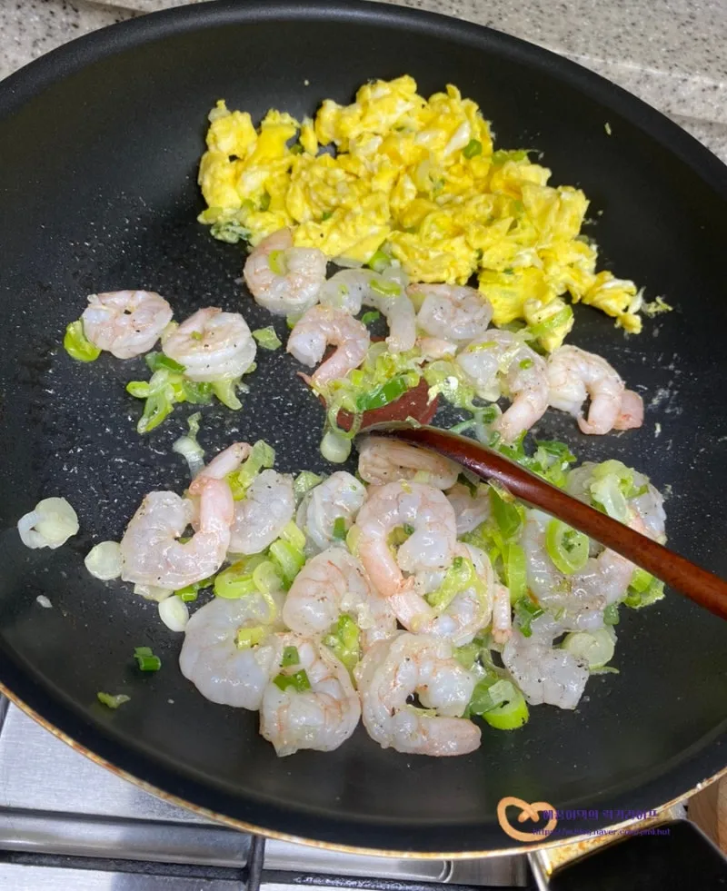 오동통한 새우를 넣고 볶아주면 탱글탱글 식감도 좋고
