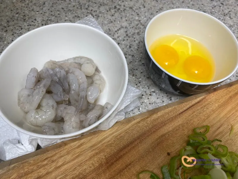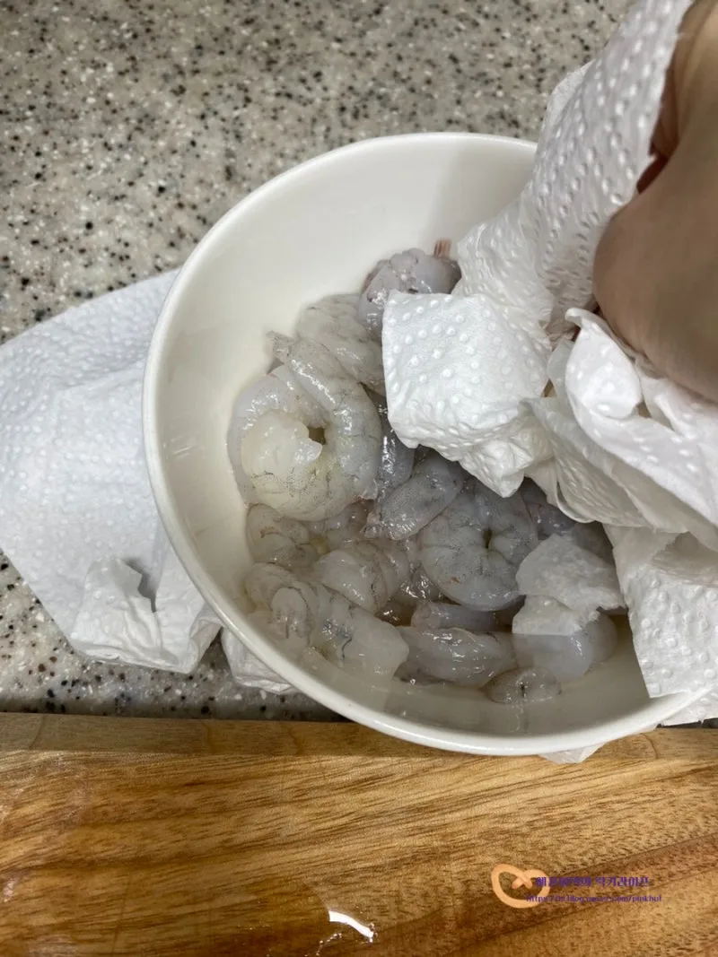 세척한 새우는 물기를 톡톡 제거해서 준비했어요