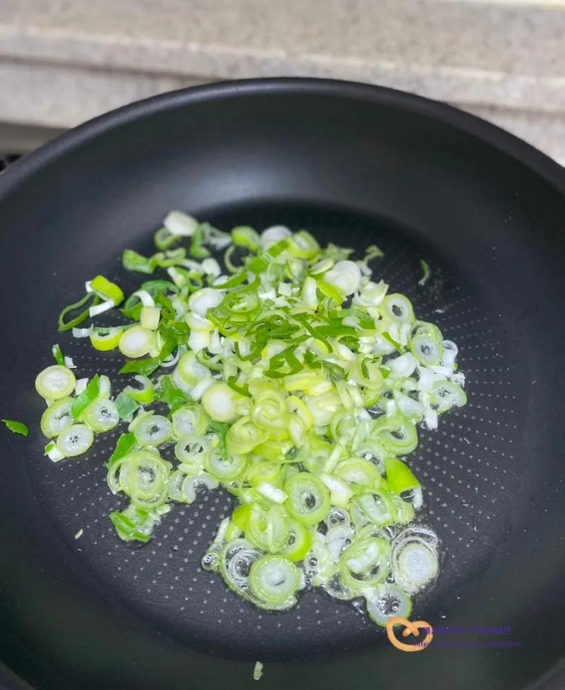 대파와 새우를 함께 볶아주고