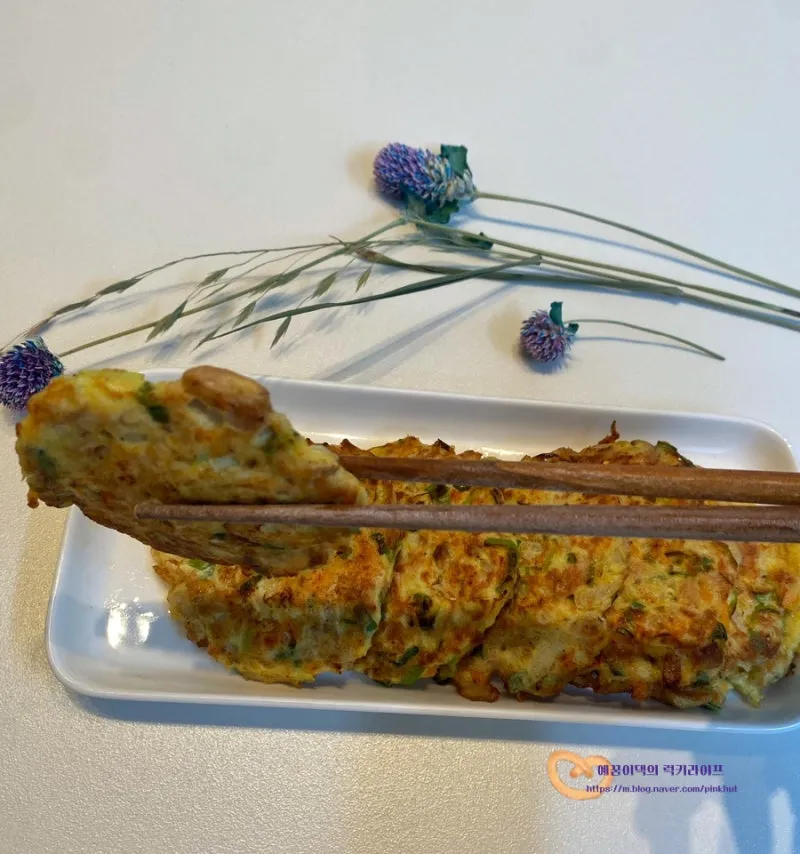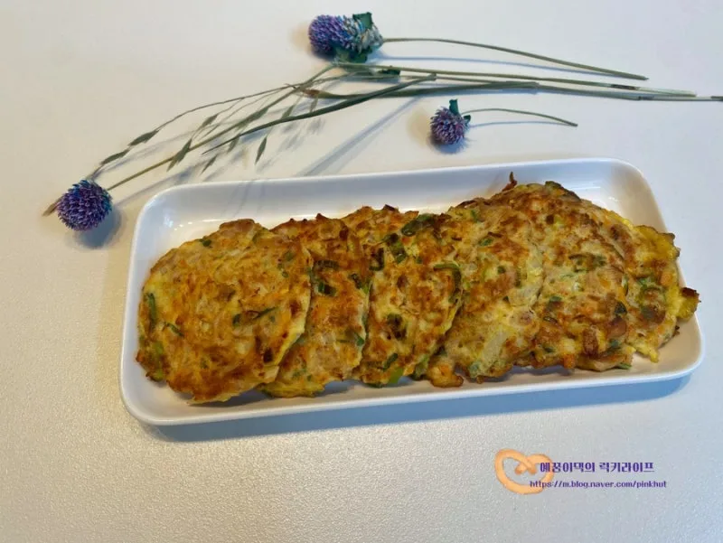 앞뒤로 두번씩 뒤집어 가면서 노릇노릇하게 부쳐주었어요