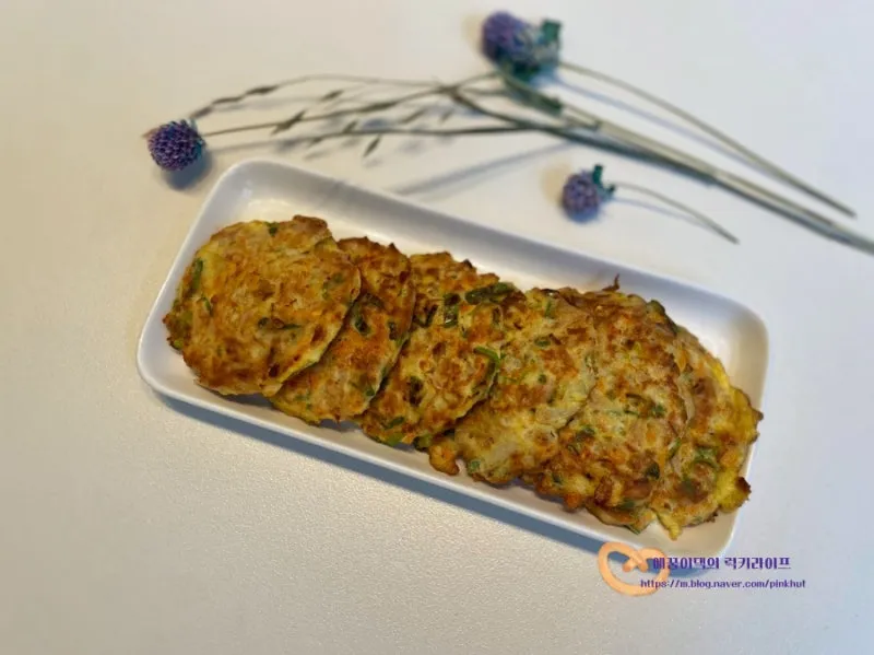 자주 쟁여두는 참치캔으로 간단한 야채 참치전을 만들어 보았어요 :)