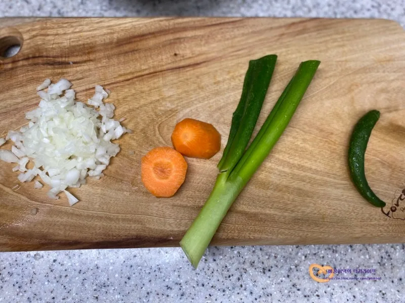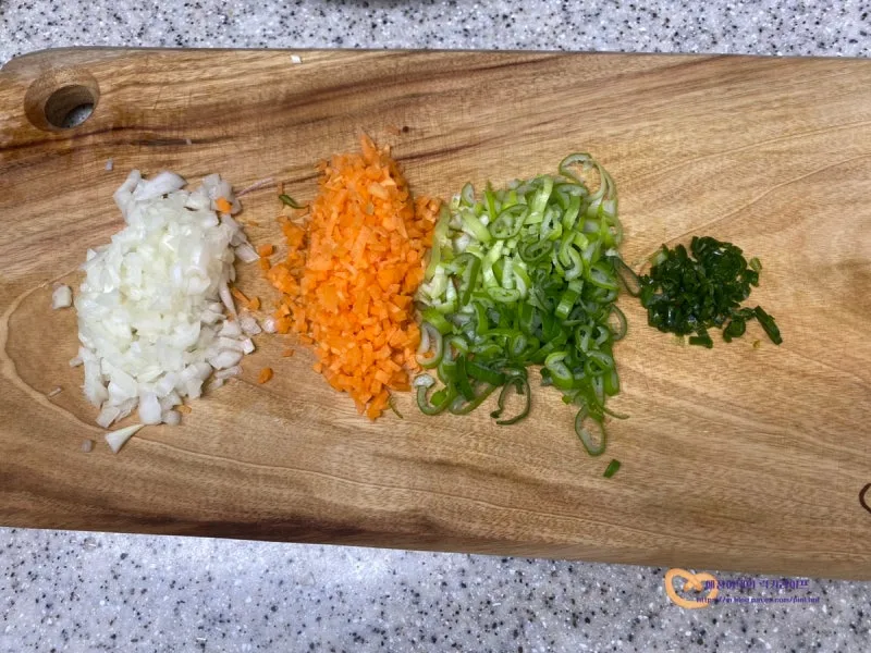 양파, 당근, 대파는 잘게 다져서 준비하고