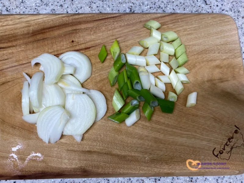 양파는 채 썰고 대파는 큼직하게 어슷 썰어서 준비해 주세요
