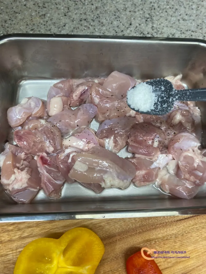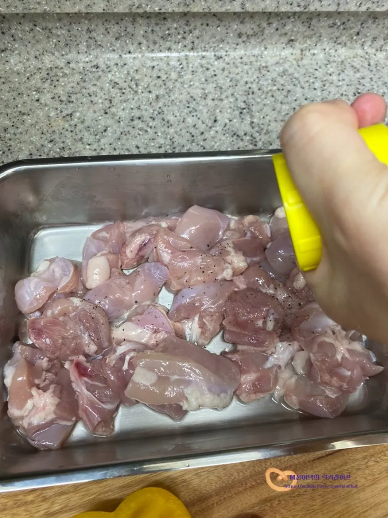 닭고기에 후춧가루 약간, 소금 3 꼬집 정도를 뿌리고