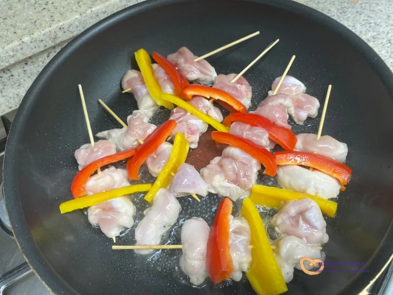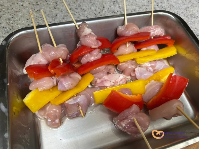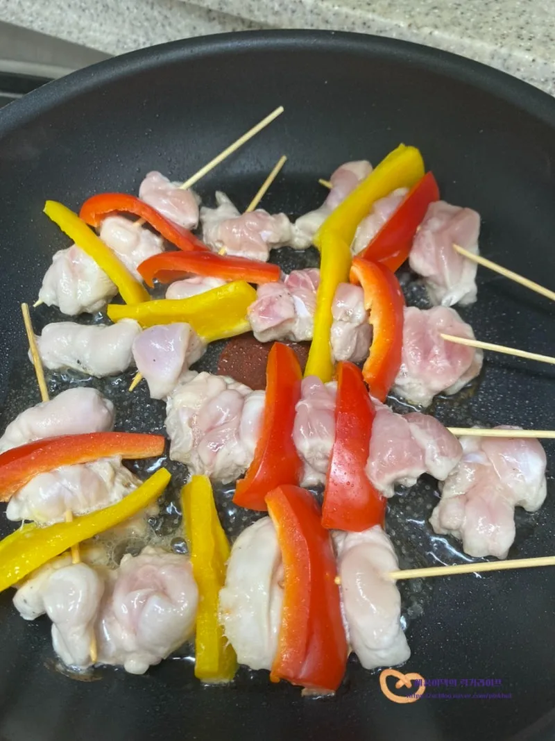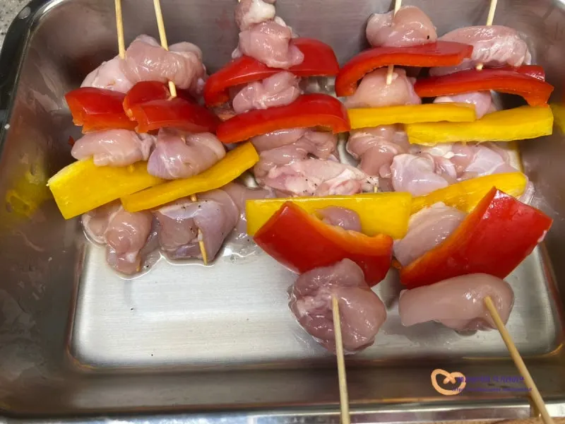 3. 꽂이에 닭고기, 파프리카 끼우기