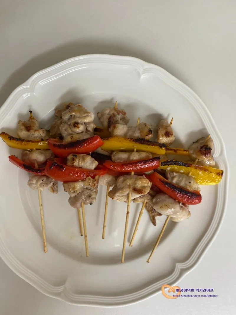 예꿈이댁은 16.5cm 꽂이 기준으로 닭고기 3개, 파프리카 2개를 끼우니