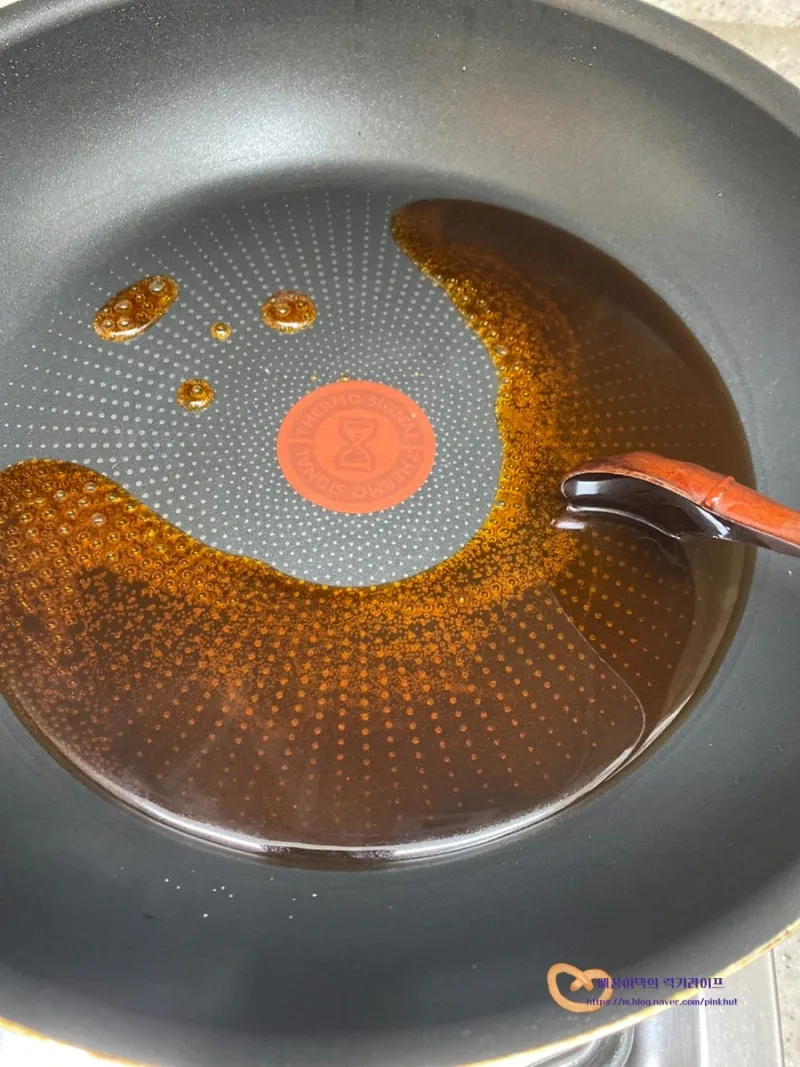 팬에 식용유 2T를 두르고 중불로 불을 켜고