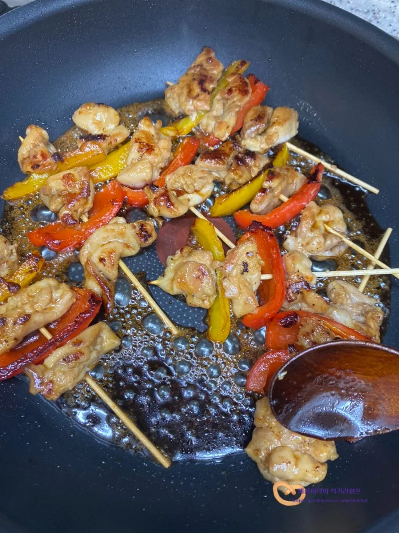 보글보글 끓어오르면 초벌구이 해 놓은 닭꼬치를 넣어주세요