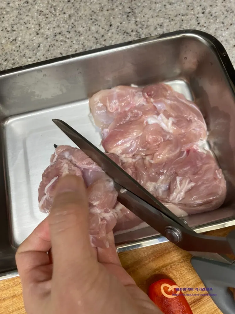 닭다리살과 비슷한 길이로 잘라서 준비해 주세요 :)