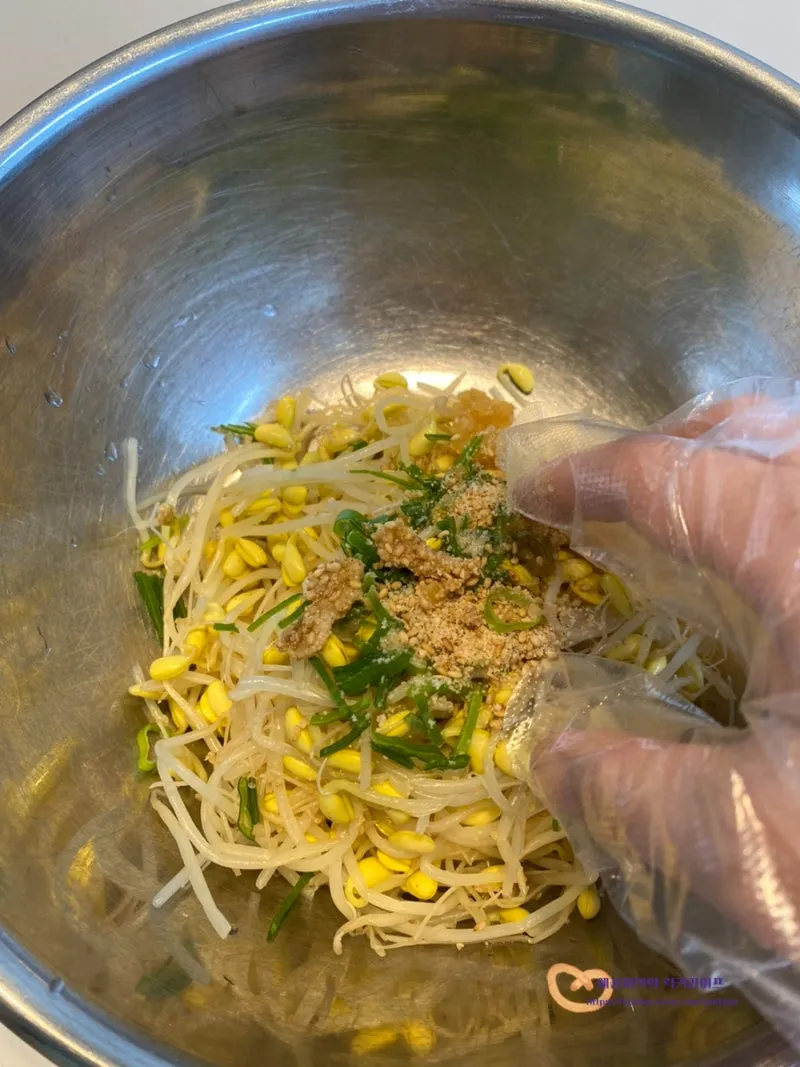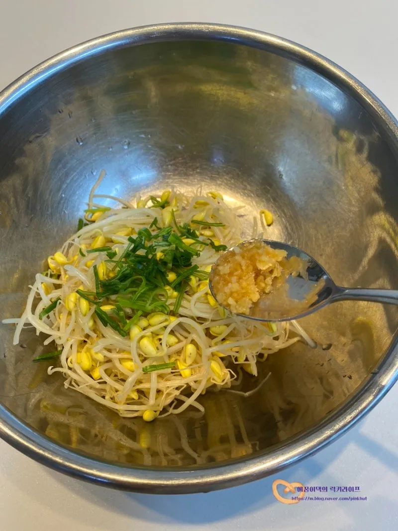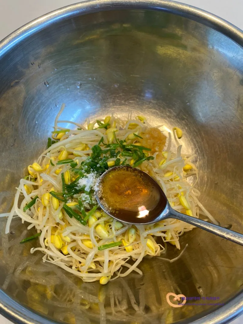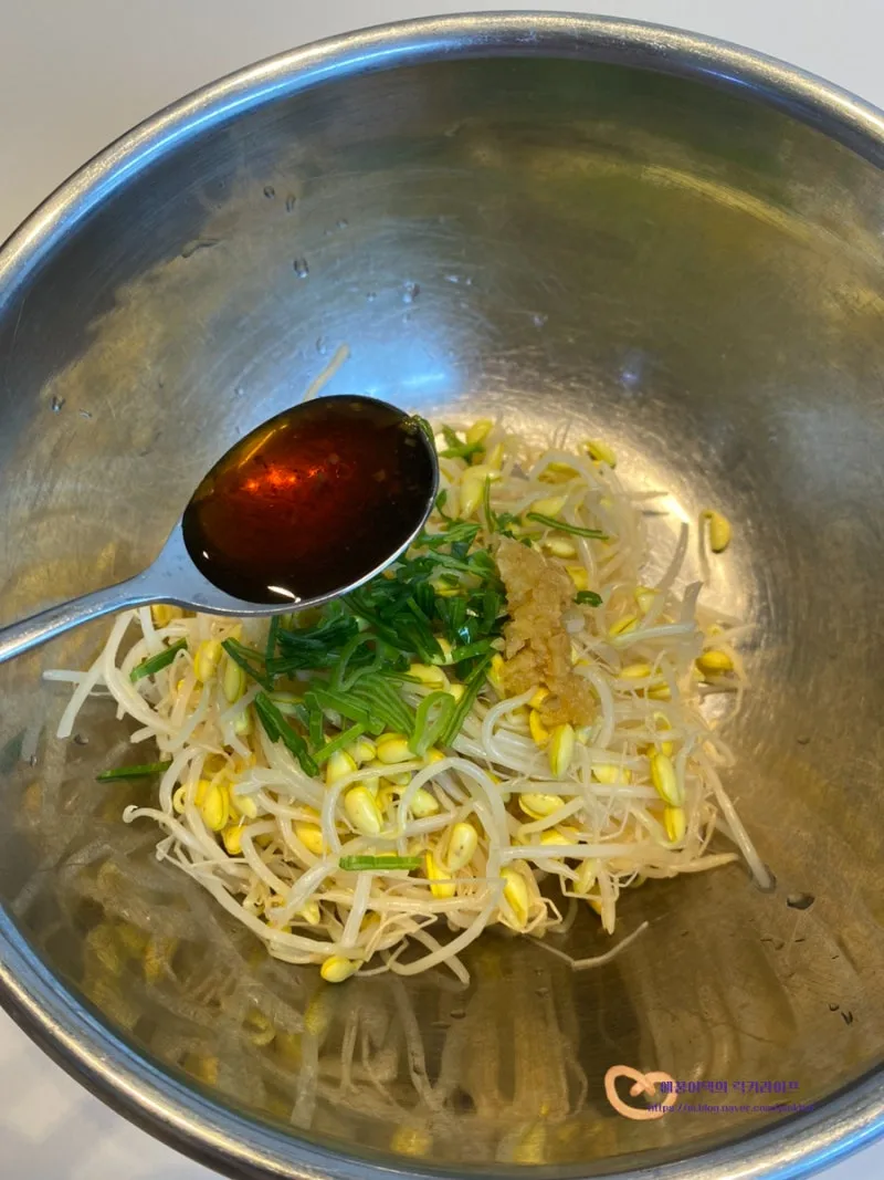 여기에 고춧가루만 추가하면 빨간 콩나물무침이 된답니다