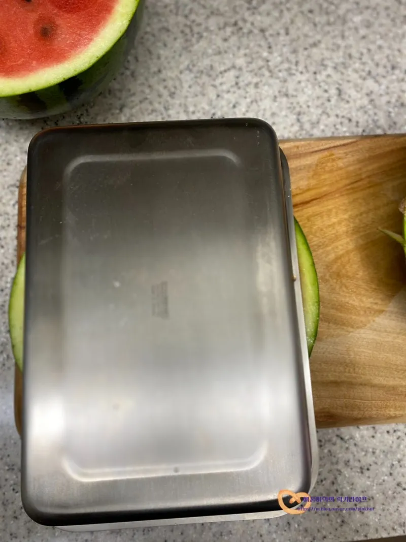 이렇게 차곡차곡 담아 수박 예쁘게 자르기를 해 놓으니