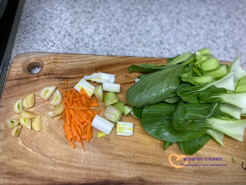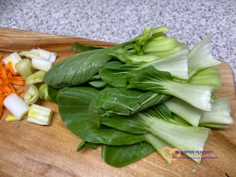 청경채 야채를 넣어서 휘리릭 볶아주면 끝