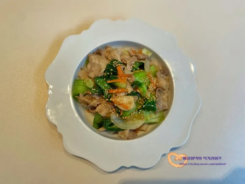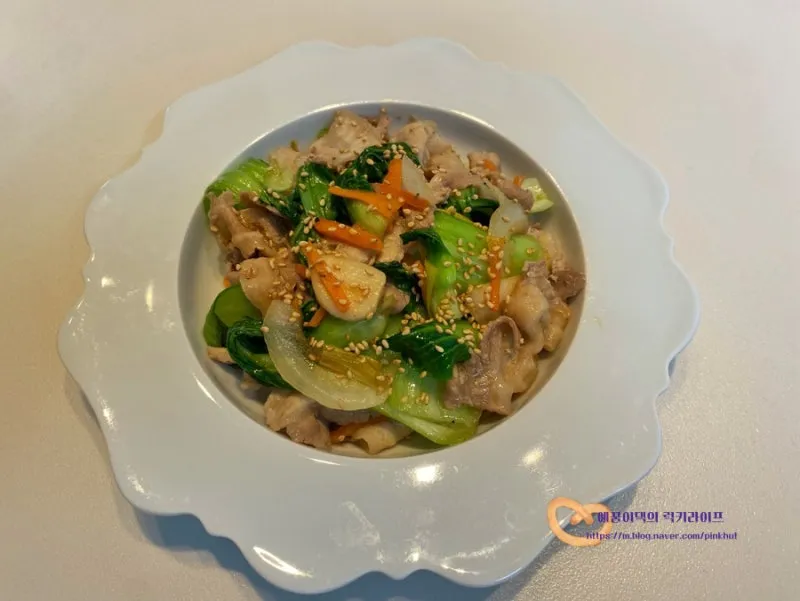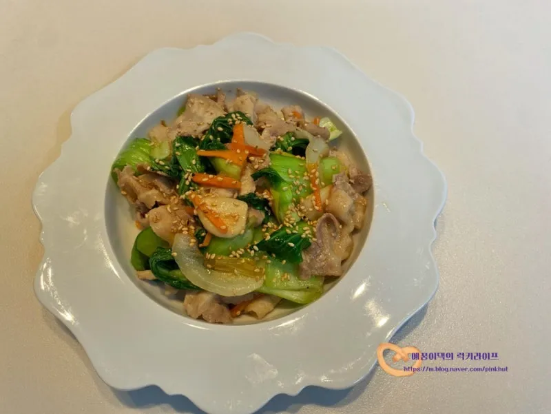청경채 돼지고기 굴소스볶음 만드는법 완성이에요 :)