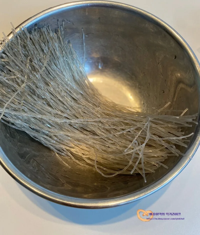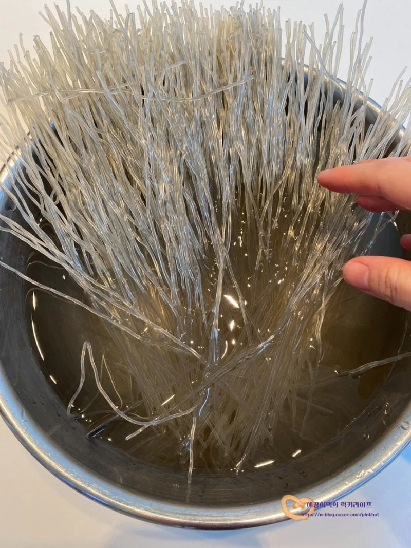 물을 담은 볼에 당면을 넣어서 불려줄 거예요