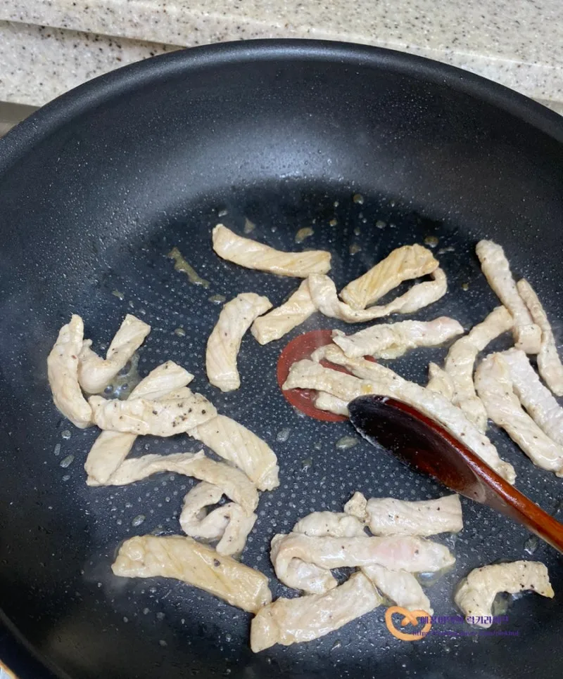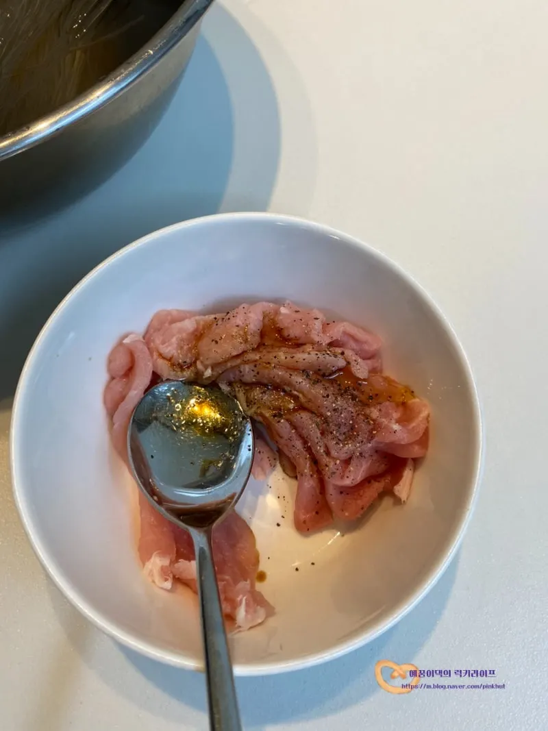 여기에 소금 3꼬집 정도 넣어서 밑간을 해주고,