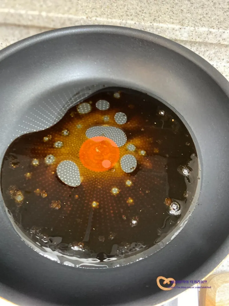 팬에 식용유2.5T를 넣고 중강불로 불을 켜고