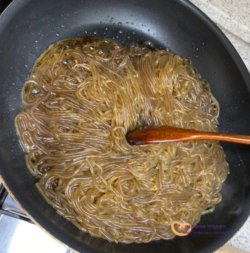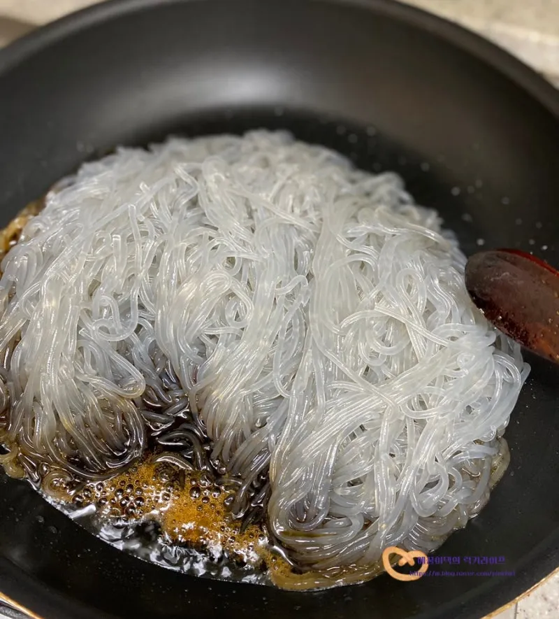 양념장을 바글바글 끓여서 데친 당면을 넣고