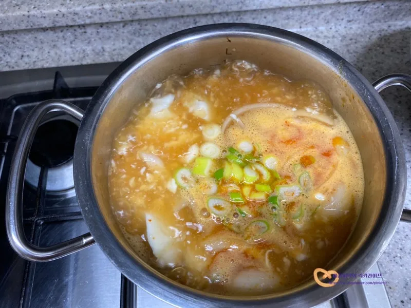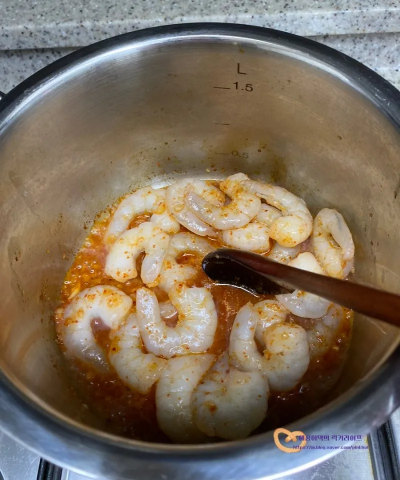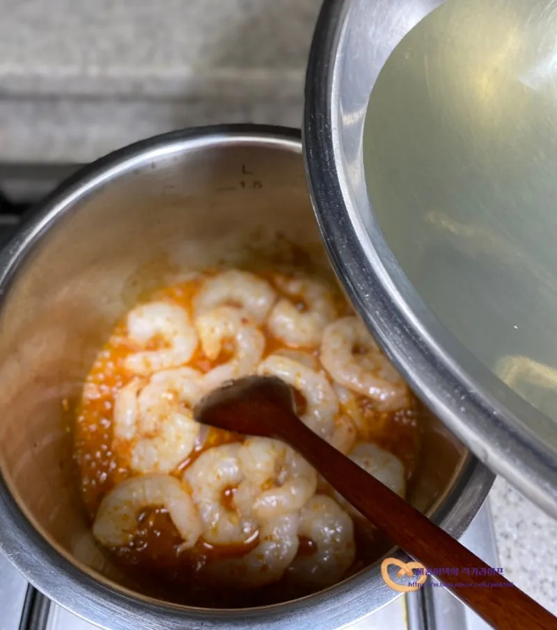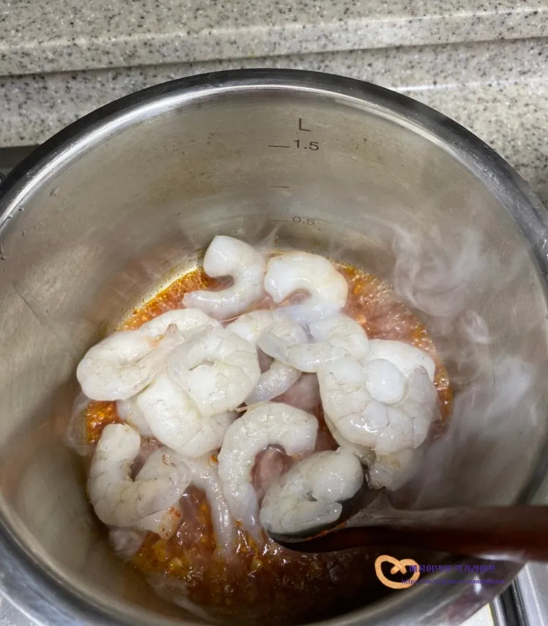 한소끔 끓여주면 새우 순두부찌개 완성이에요 :)