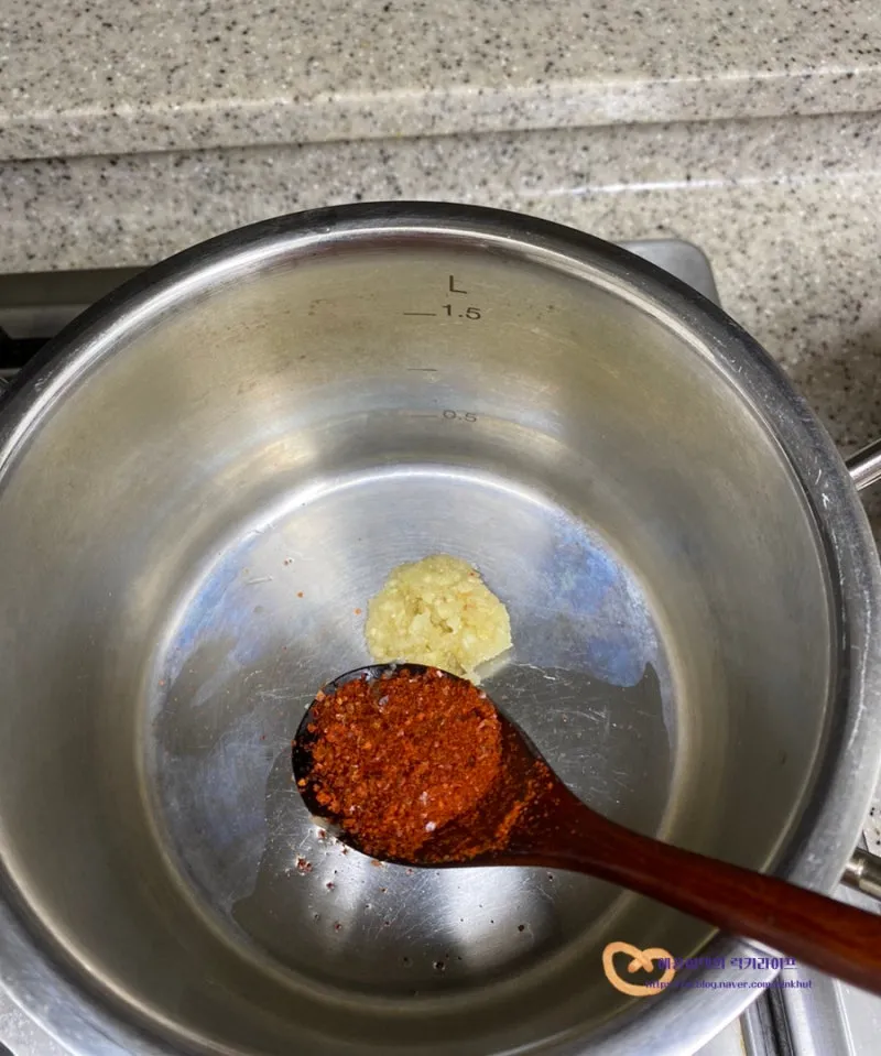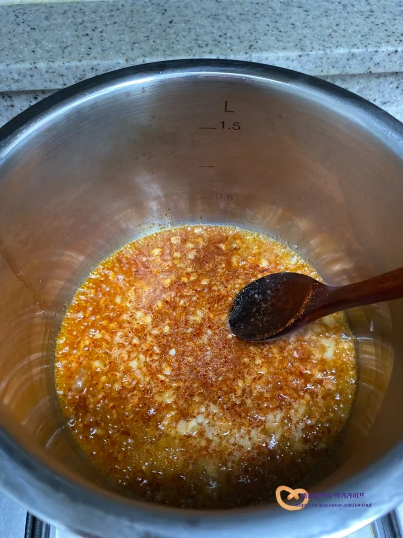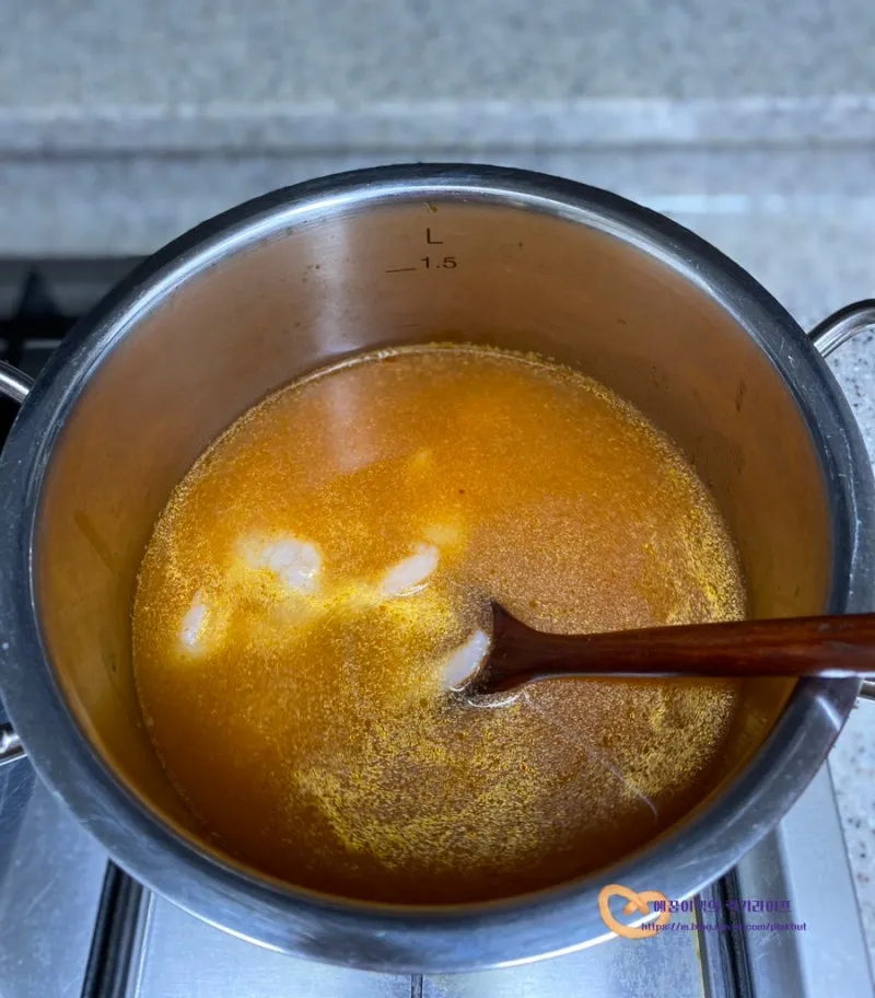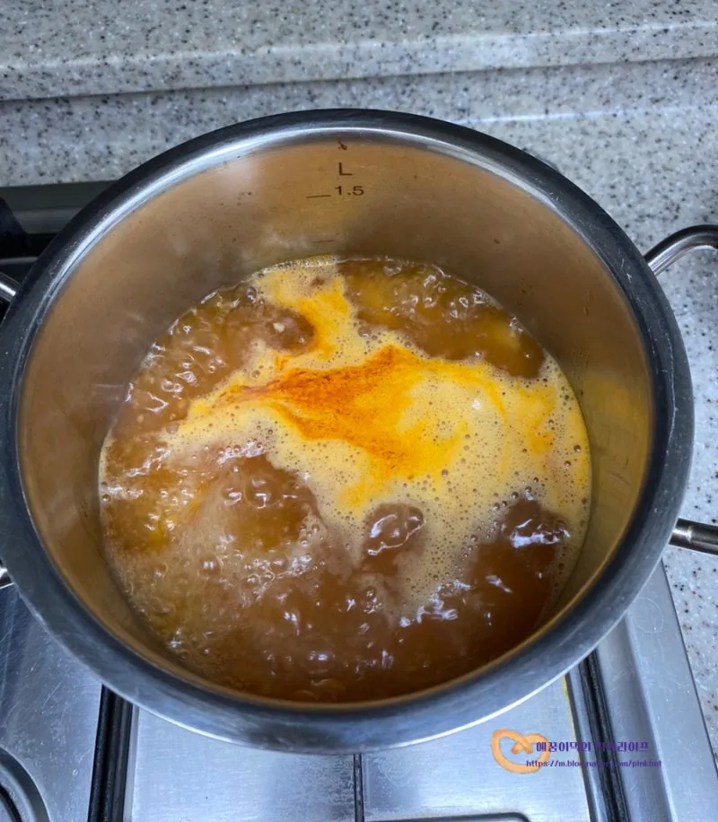 양념재료를 다 넣었으면 중불로 불을 켜고