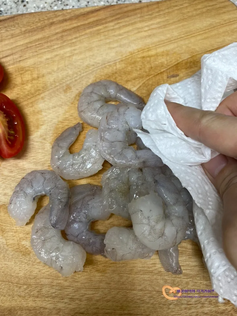 냉동새우 14마리는 흐르는 물에 세척한 후