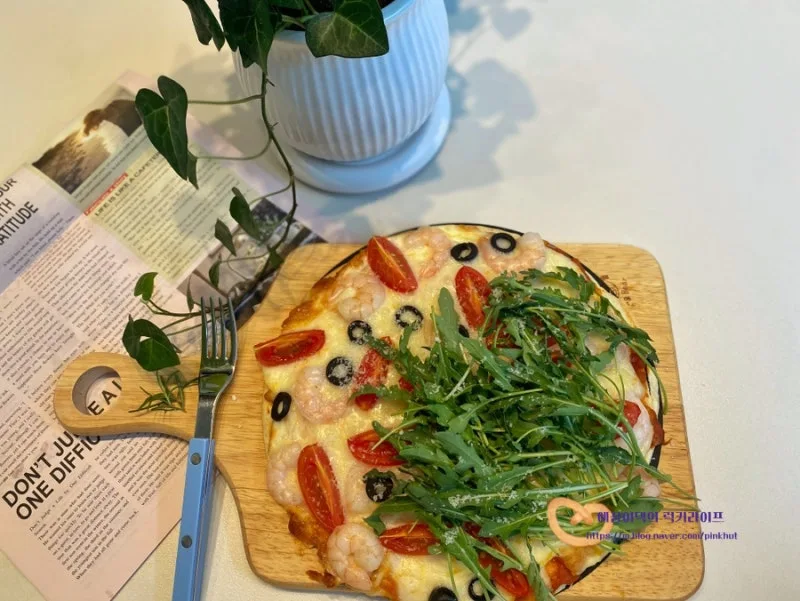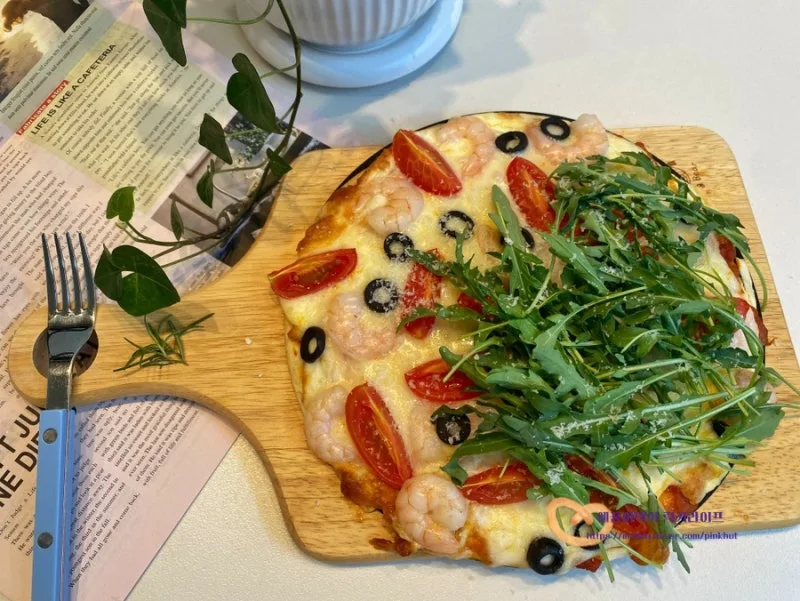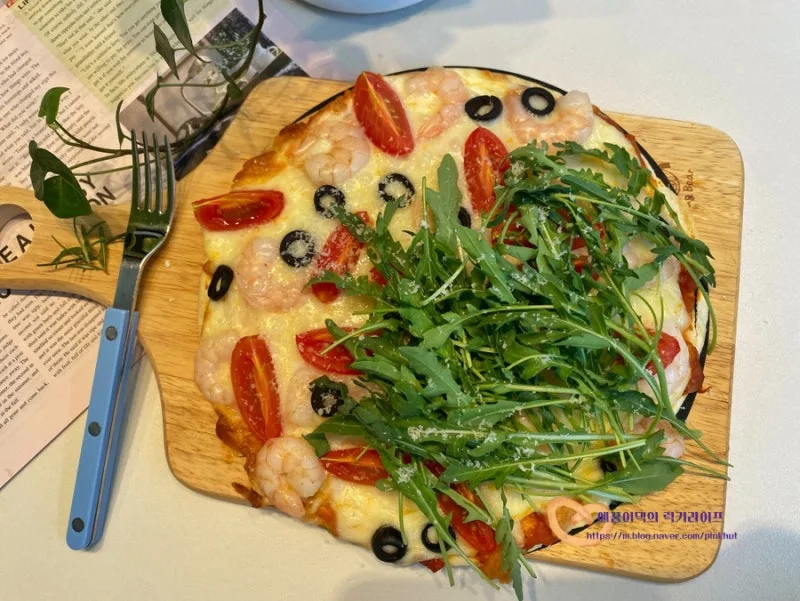 새우 토마토 루꼴라피자 만들기 한 후에는