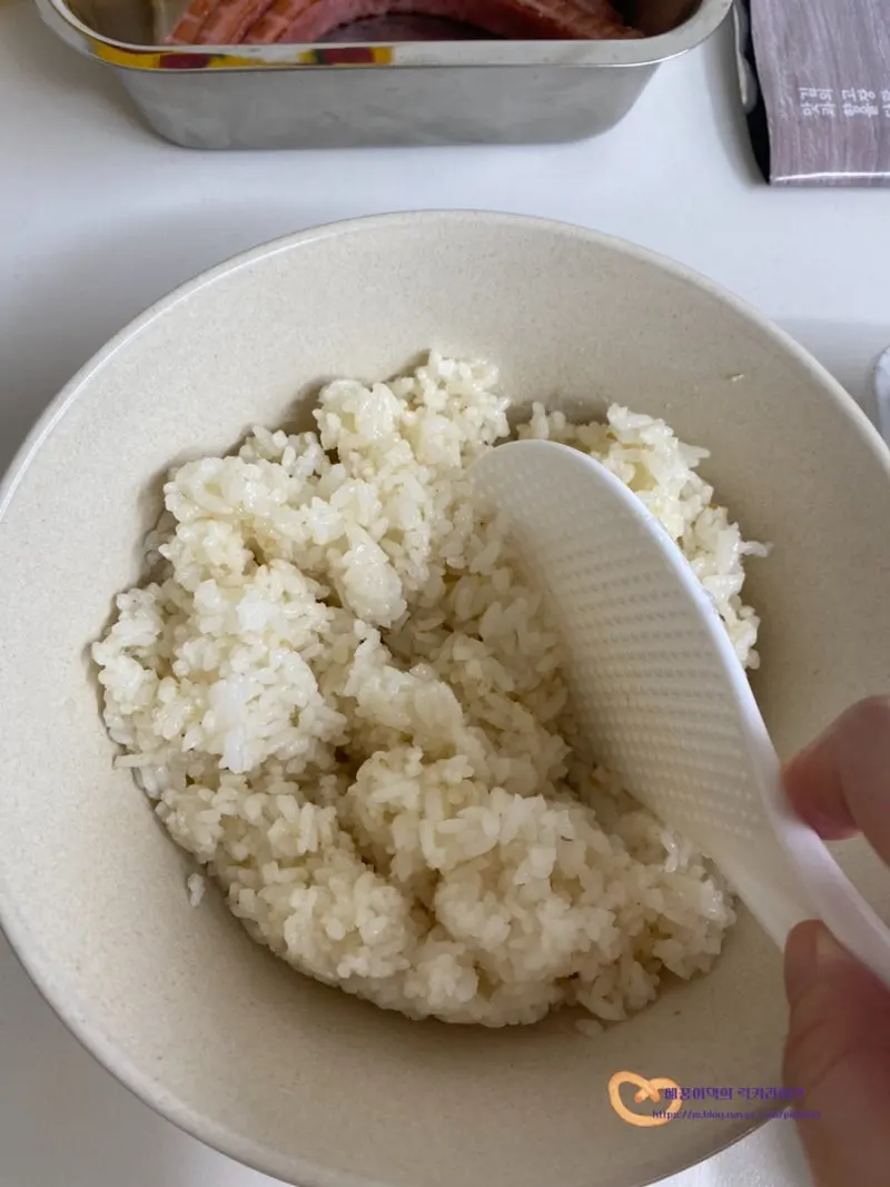 양념이 잘 섞이도록 따끈한 밥을 준비하고,
