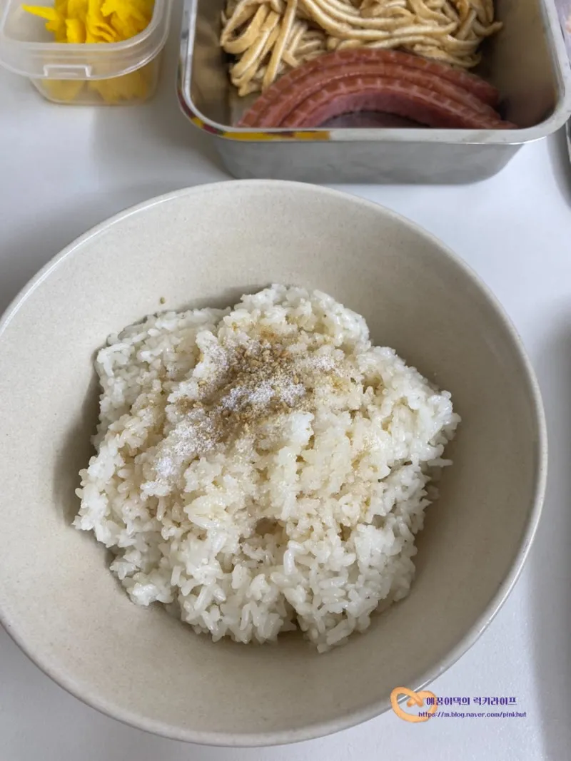 김밥 3줄 분량으로 밥 450g을 준비했어요