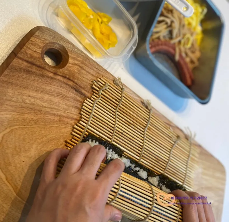 돌돌 말아주고, 김밥 말기를 한 후에는