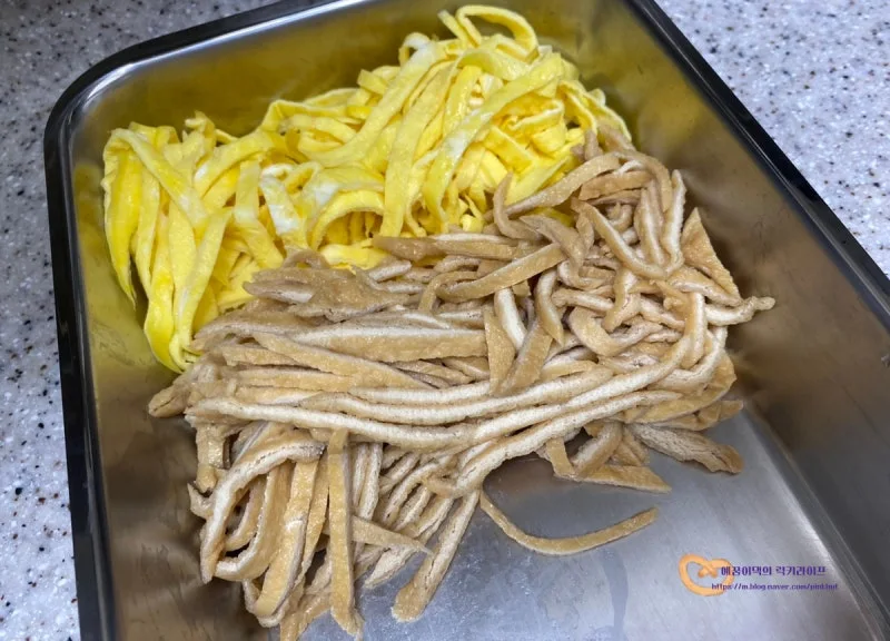 위의 사진처럼 채 썰어서 준비해 주세요 :)