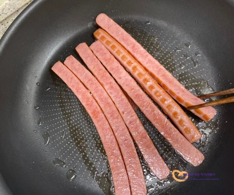 김밥용햄은 뜨거운 물에 가볍게 데친 후