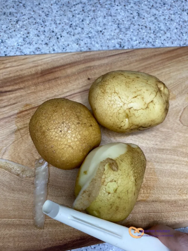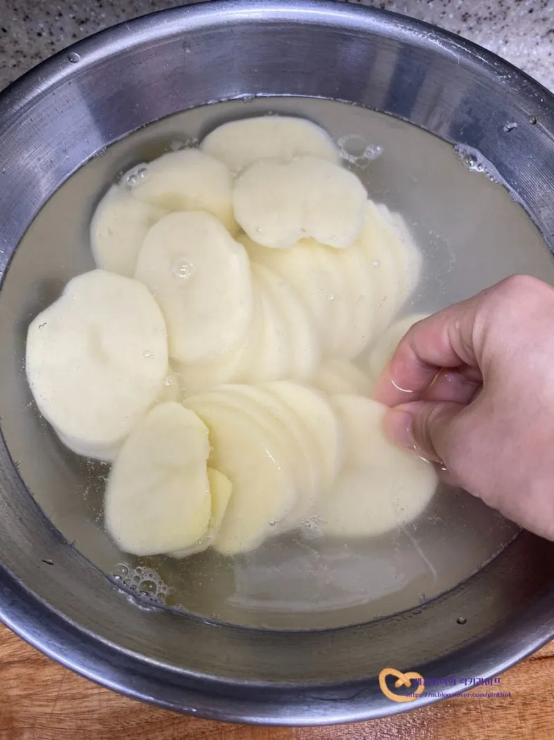 흐르는 물에 감자를 씻어서 껍질을 제거한 후에