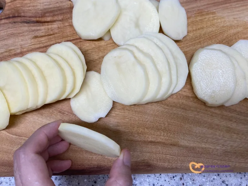 0.5~0.6cm 두께로 슬라이스해 주었어요