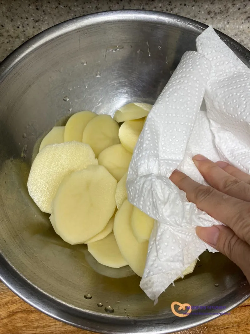 감자를 넣고 노릇노릇하게 튀겨주면 되세요 :)