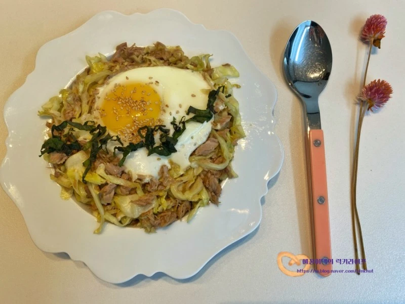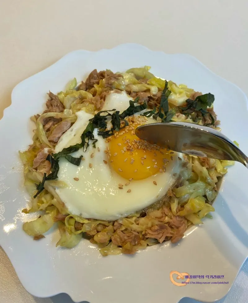 저칼로리 식단인 양배추 참치덮밥을 만들어 보았어요 :)