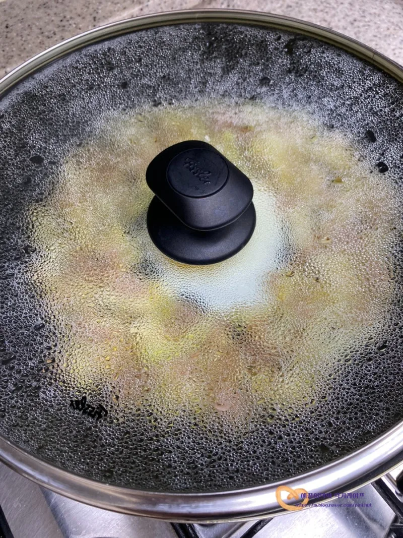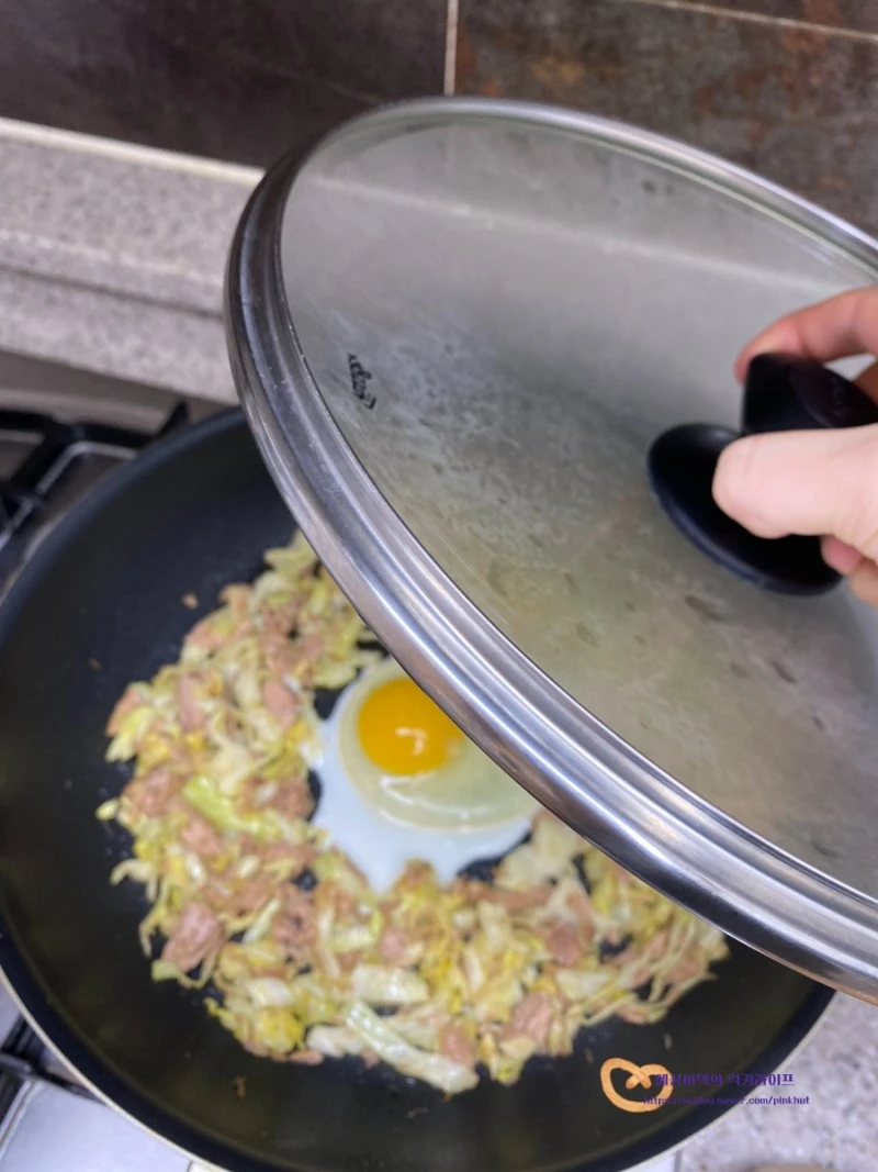 저는 반숙상태로 익었을 때 불을 끄고 마무리해주었습니다