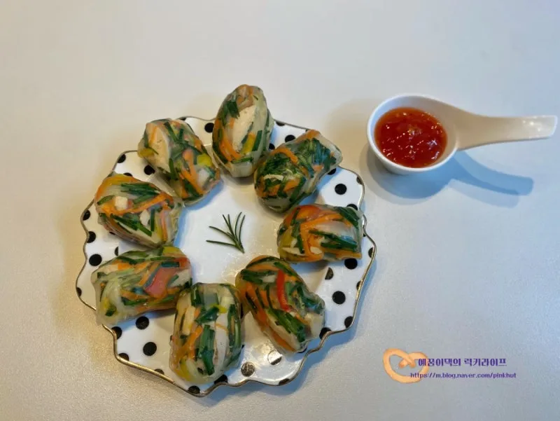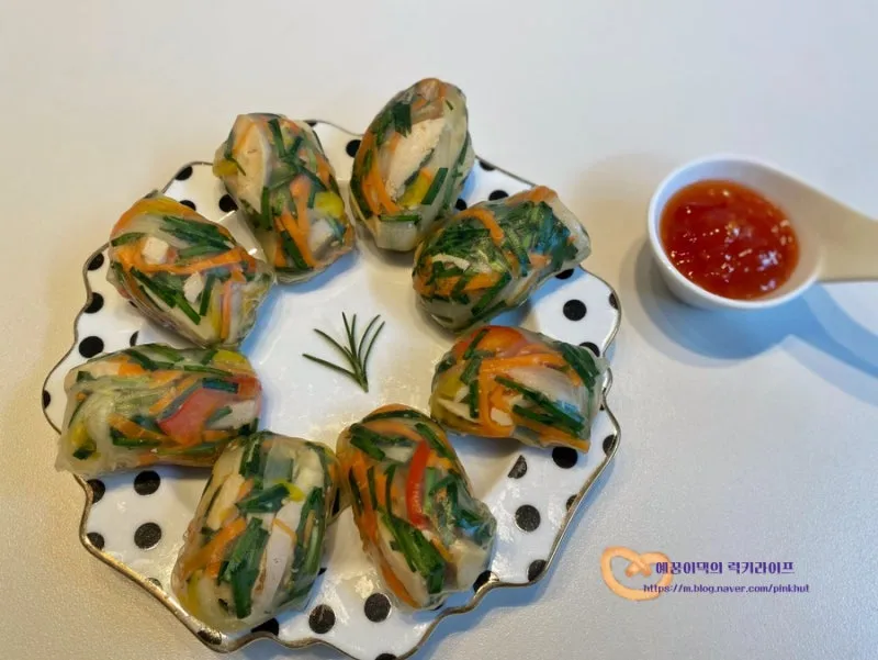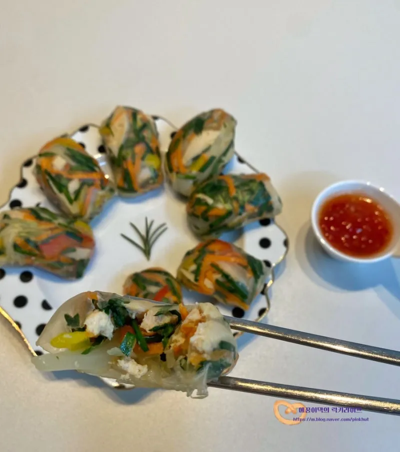 라이스페이퍼에 돌돌말아 닭가슴살 스프링롤 만들기