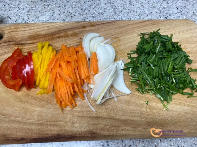 얇은 두께로 채 썰어서 준비했어요