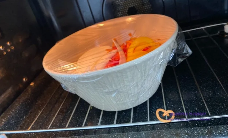 랩을 씌우고 전자레인지에 1분간 데워주었어요