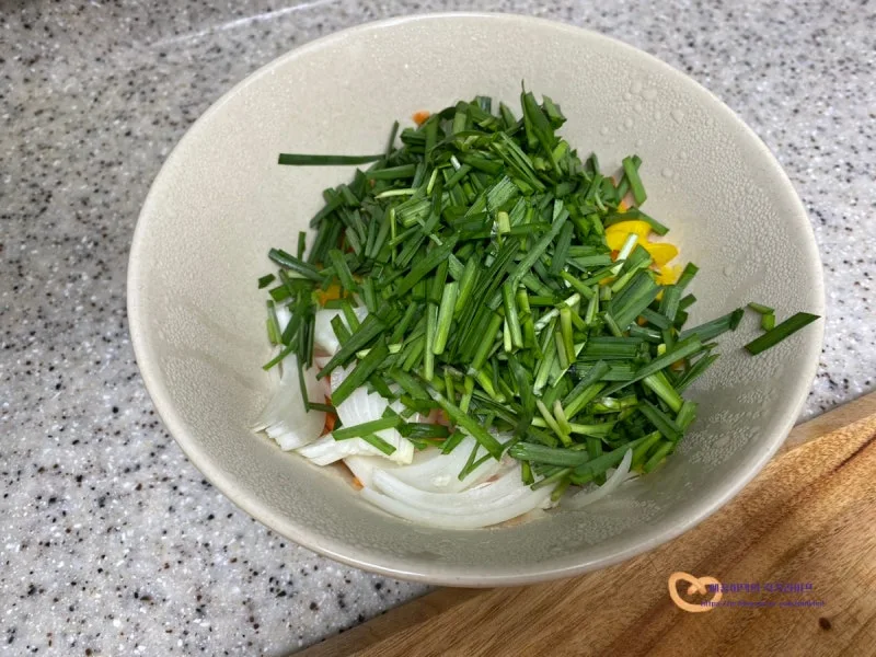 채소와 함께 양념에 버무려 속재료를 만들었더니