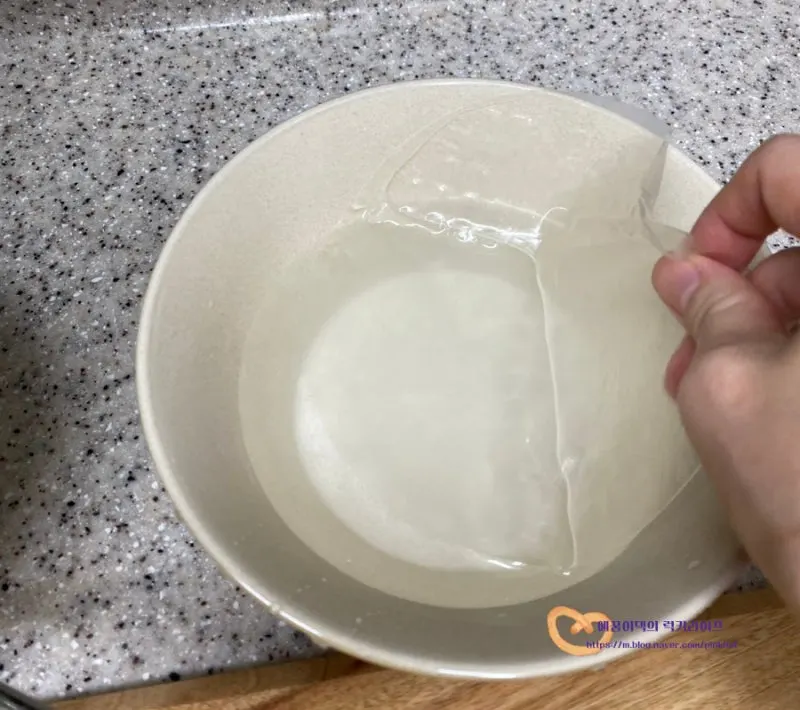 미지근한 물에 라이스페이퍼를 담갔다가