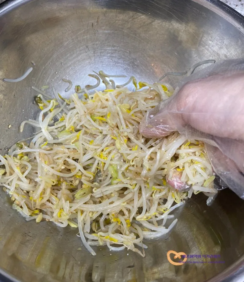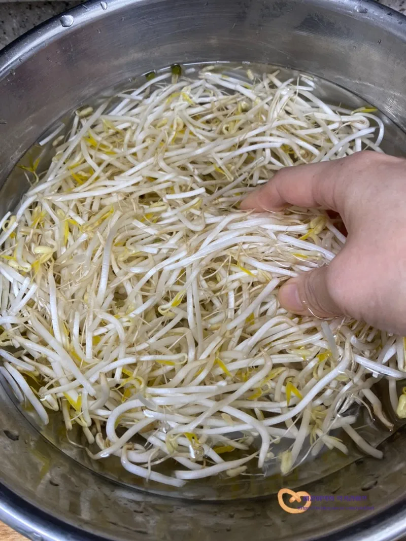 볼에 숙주와 물을 담고 손으로 살살 흔들어가며