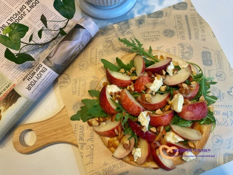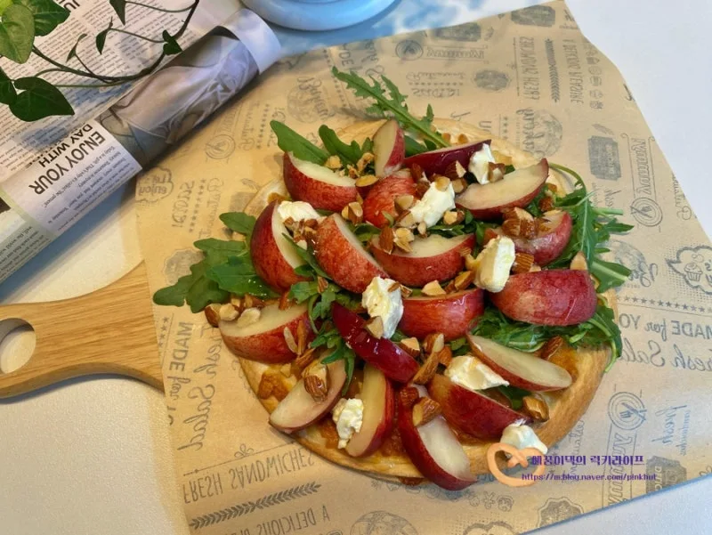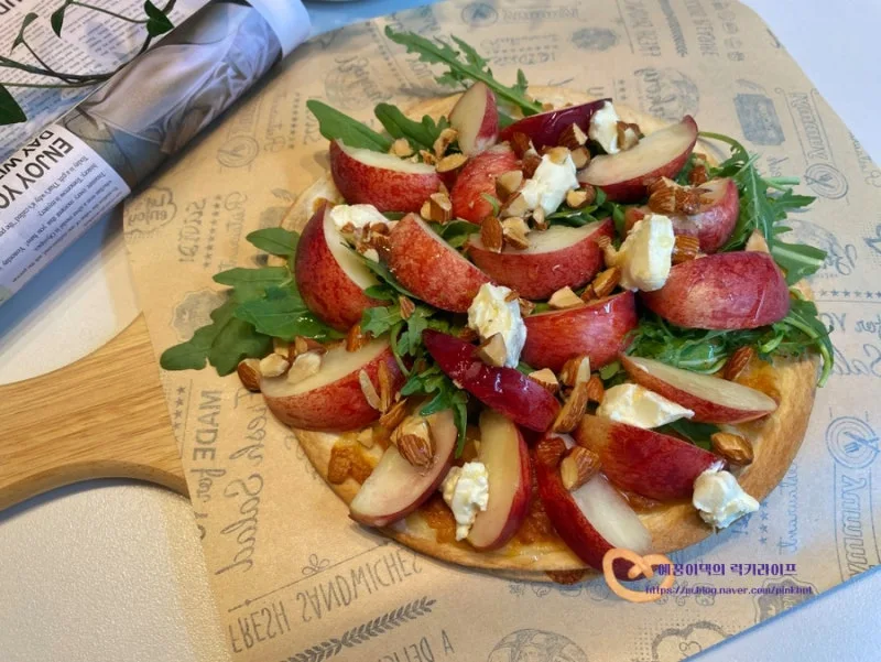 신비복숭아 먹는법 루꼴라 복숭아 샐러드피자
