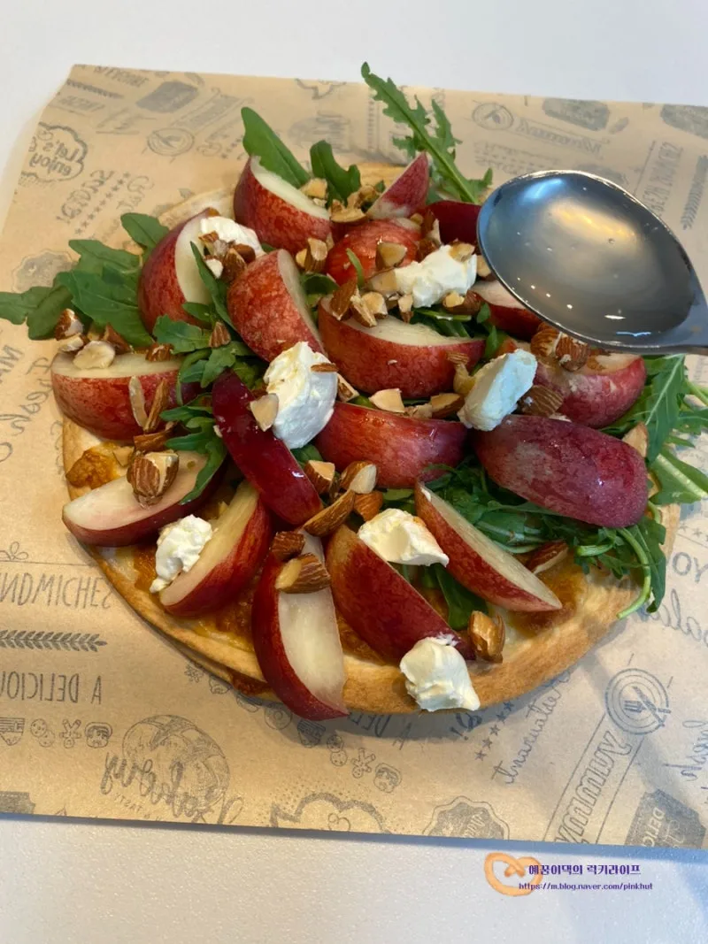 루꼴라 신비복숭아 피자샐러드예요