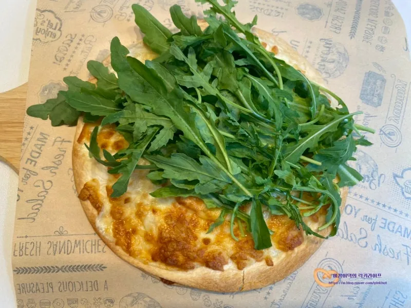 맛있는 샐러드 피자가 완성이에요 :)