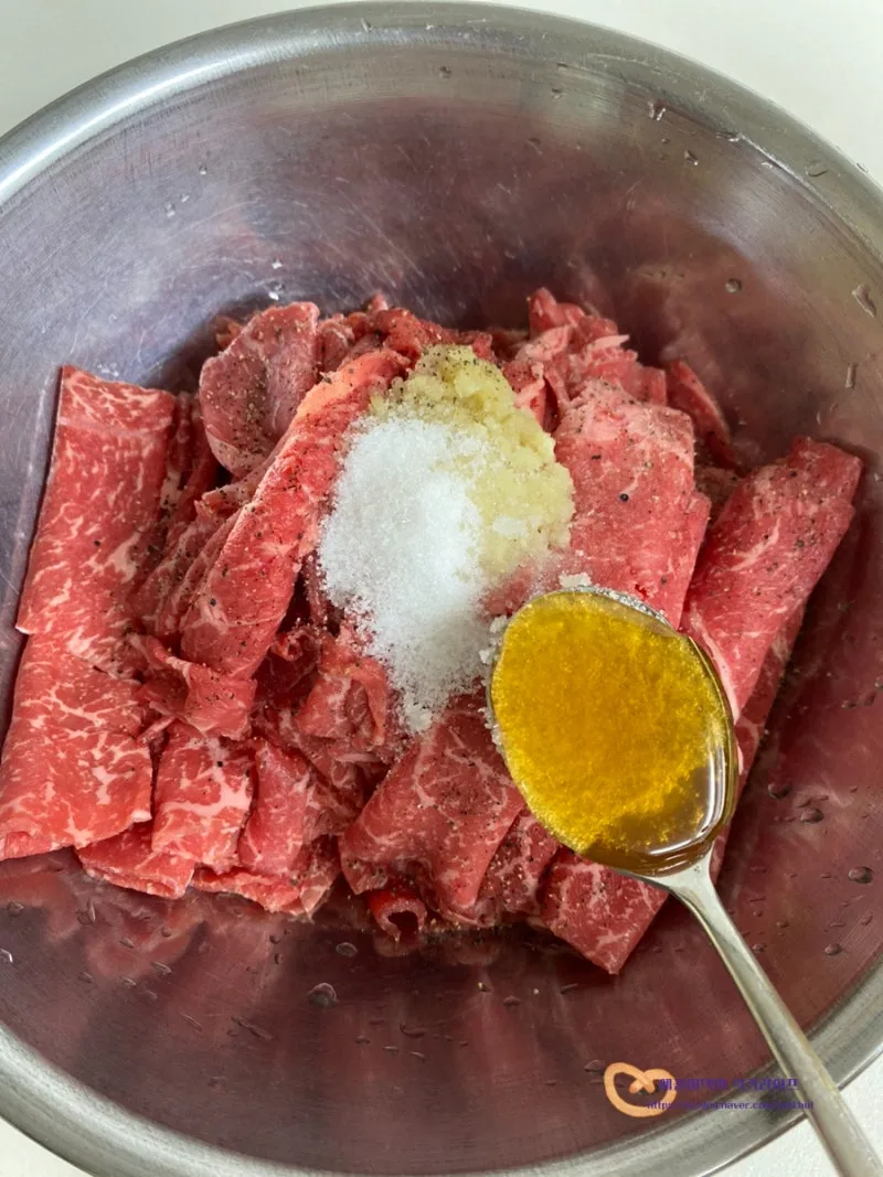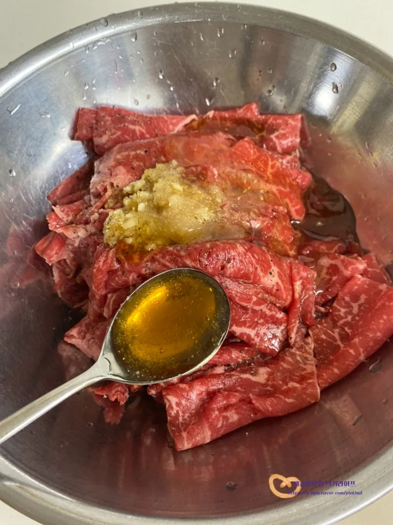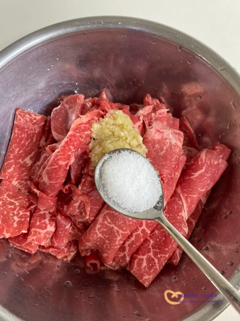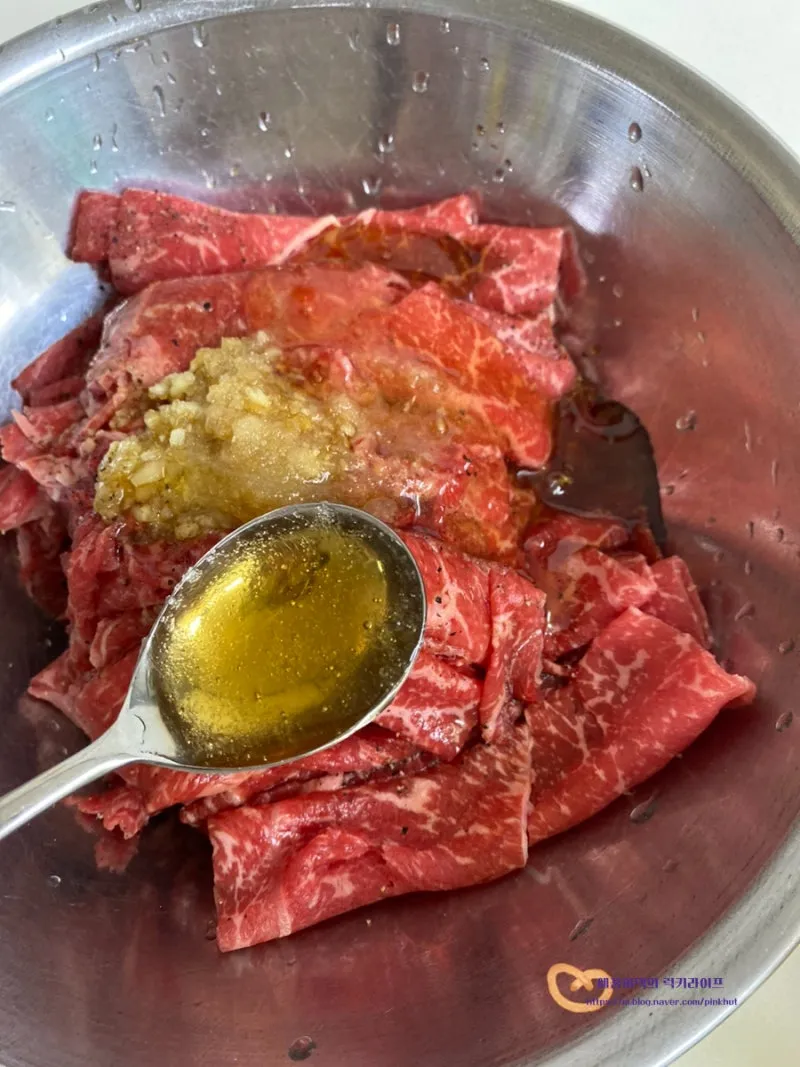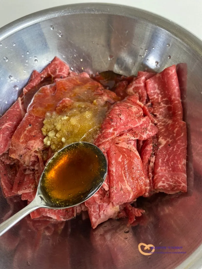 다진마늘 1T, 설탕 2T, 올리고당 3T,
