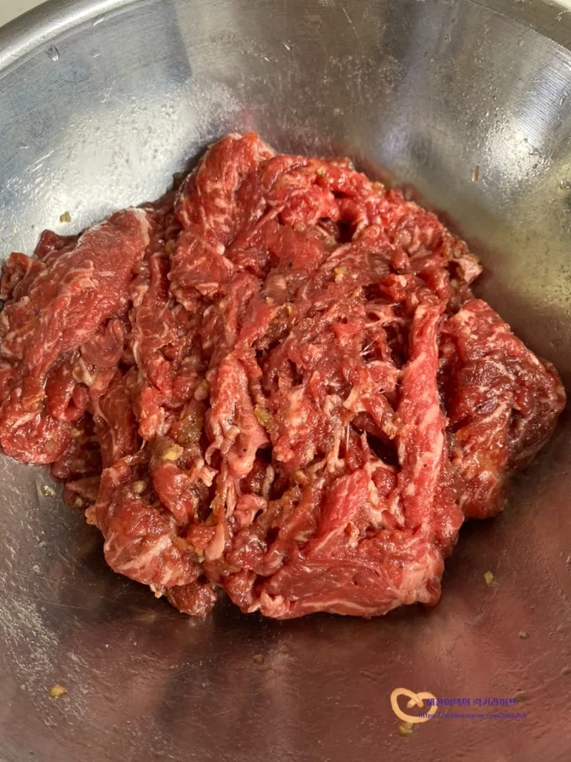 위의 사진처럼 얇은 소불고기감으로 600g을