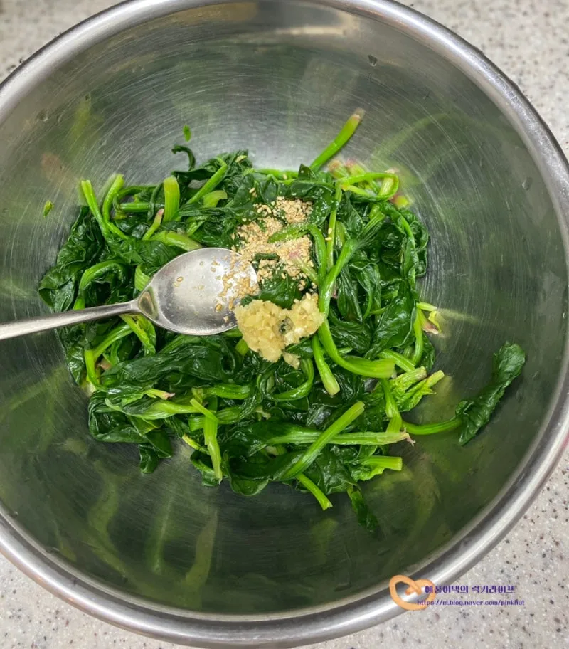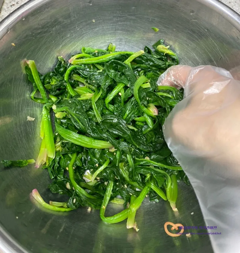 볼에 시금치를 담고 가볍게 풀어준 후에